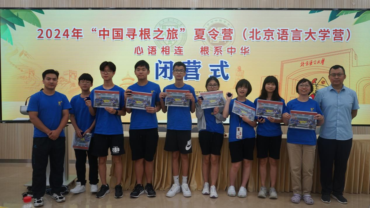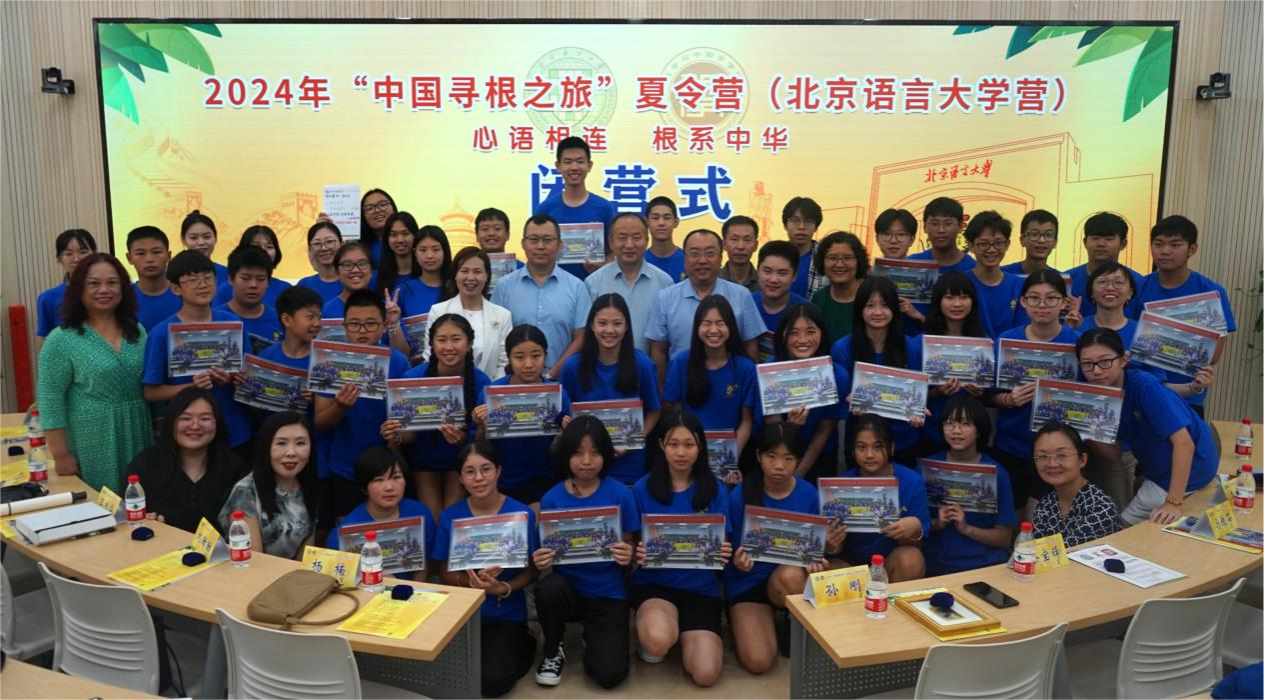 8月18日,由中国侨联主办,北京语言大学承办的2024“中国寻根之旅”夏令营(北京语言大学营)闭营仪式在京举行。中国侨联文化交流部教育处处长孙刚、北京语言大学汉学与中国学学院院长徐宝锋、北京语言大学汉学与中国学学院党委书记马铁石、北京语言大学教师教育学院党委副书记兼纪委书记李晓波、中旅入境国际创新业务部总监刘珊珊、罗马中华语言学校校长蒋忠华、罗马中华语言学校副校长郑建山、意大利国际教育文化交流学院院长刘姗、法国辛老师中文课堂校长辛丽燕、北京语言大学汉学与中国学学院合作办主任杨楠等单位领导出席仪式。
