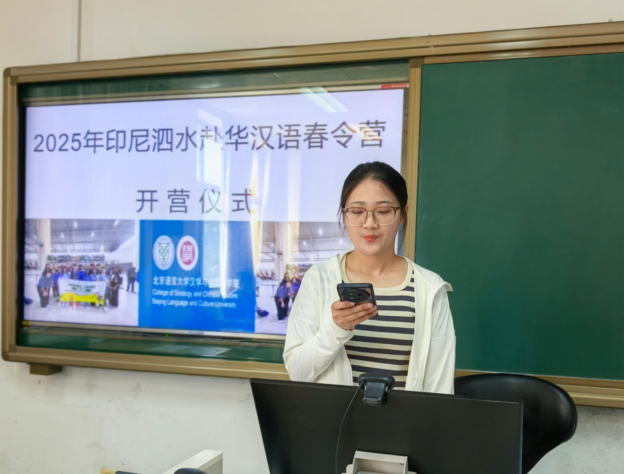 梁姝绚女士在致辞中对北京语言大学汉学与中国学学院为此次春令营所做出的精心筹备表示衷心感谢。她提到,印尼学生对汉语学习和中国文化探索怀有极高的热情,此次春令营为学生们提供了宝贵契机,能让他们亲身浸润在中国语言文化的浓厚氛围中。梁姝绚老师鼓励营员们积极参与各项课程与活动,勇敢开口说汉语,充分利用在北京语言大学的学习时光,提升汉语水平,深入了解中国的历史、文化、社会等方方面面。她还表示,希望营员们在跨文化交流中,秉持开放包容的心态,与中国师生以及其他营员建立深厚友谊,成为中国和印尼文化交流的友好使者。同时,梁姝绚老师承诺,作为领队会全力协助学生们解决学习和生活中遇到的问题,保障大家顺利度过充实而难忘的春令营时光。