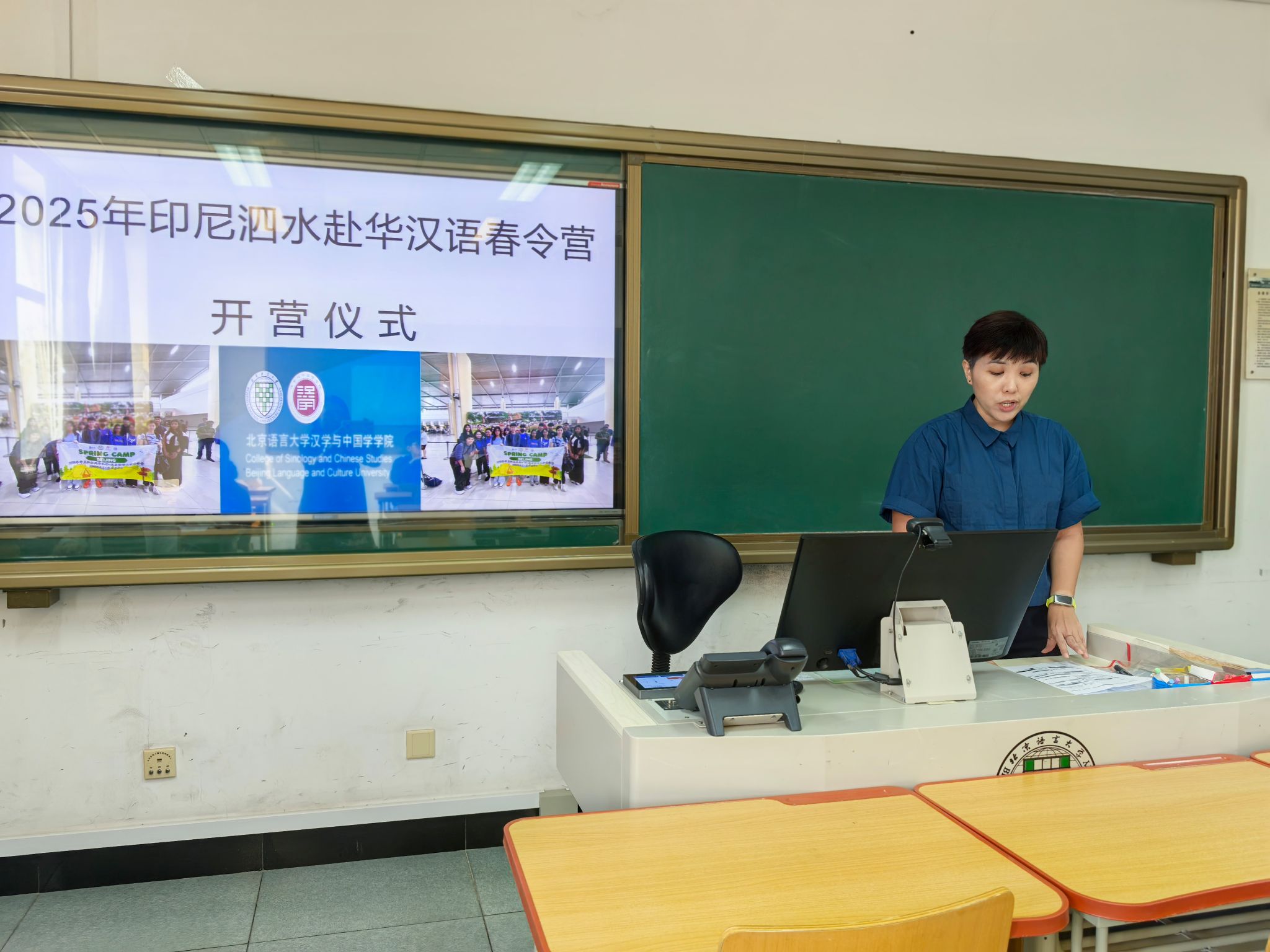 5月7日上午,北京语言大学2025年“印度尼西亚泗水赴华汉语春令营”开营仪式在教一楼606顺利举行。汉学与中国学学院党委书记马铁石、对外合作与交流办公室主任杨楠、印度尼西亚赴华汉语春令营领队梁姝绚女士、Nation Star Academy(以下简称“NSA”)初中部校长Inggriette Liany Widyasari女士、春令营学生辅导员冯逸然、春令营教师代表张子怡,以及来自印尼泗水NSA的15名学生出席了开营仪式。仪式由汉学与中国学学院对外合作与交流办公室副主任王术昌主持。